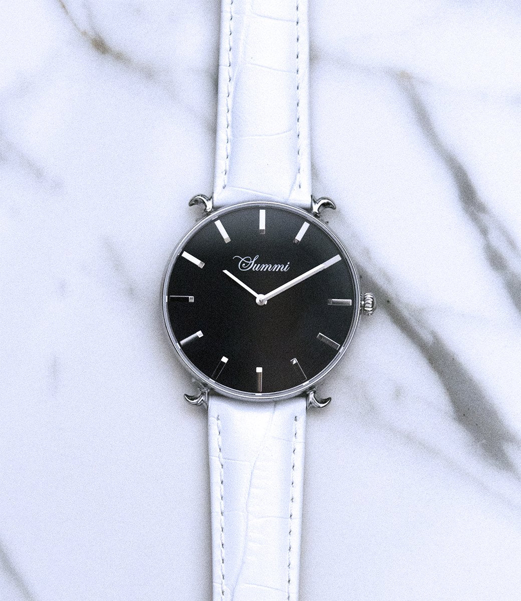 This timepiece is a French inspired design, depicting the Fleur-de-Lis, split into two that holds the strap on four sides. A blend of classic and modern with metal bar dials. Truly a mysterious timepiece that sparkles during the night. The most meticulous design out there currently. Our design is patent protected and is not to be imitated by any other.